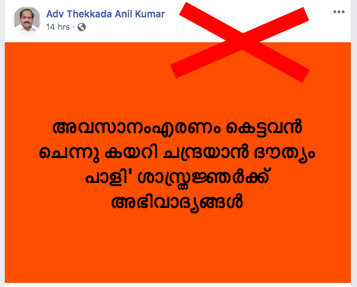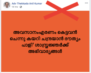 ചന്ദ്രയാൻ-2 വാർത്ത അറിഞ്ഞ് പല പോസ്റ്റുകളും കമന്റുകളും കണ്ടു… ചിലത് പറയണം എന്ന് തോന്നി…