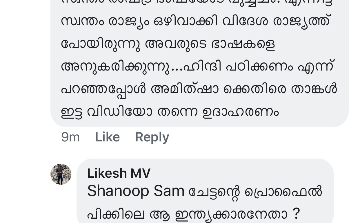 എവിടെയെങ്കിലും സോഷ്യൽ മീഡിയയിൽ ഒരുത്തൻ ഹിന്ദിയിൽ പിച്ചും പേയും പറയുന്നെങ്കിൽ അവനെ ഭേങ്കൻ ബർത്തയാക്കാതെ ഇങ്ങോട്ടയക്കണം..