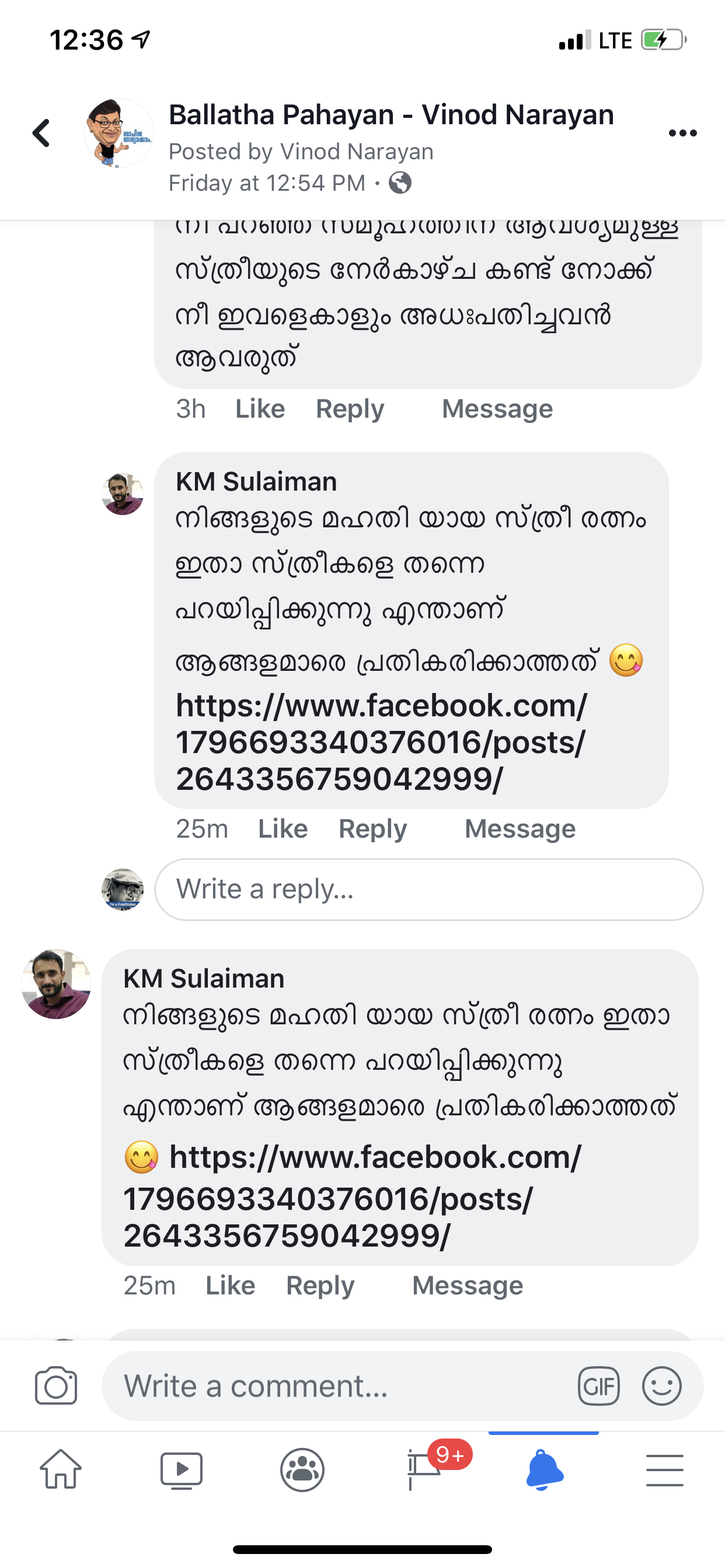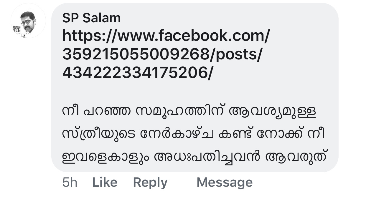 പിന്നെ സ്ത്രീകൾ നിങ്ങൾ ചില ആണുങ്ങളുടെ മാനസിക വൈകല്യത്തിൽ നിന്നും രക്ഷ നേടാൻ നിങ്ങൾ പറയുന്ന രീതിയിൽ വസ്ത്രം ധരിക്കുകയും പെരുമാറുകയും മിണ്ടാതിരിക്കുകയും ചെയ്യണമെന്ന ആവശ്യവുമായി ആരെങ്കിലും വരുകയാണെങ്കിൽ മനസിലാക്കുക ചില ആണുങ്ങളുടെ മാനസിക വൈകല്യം പേടിച്ച് പെണ്ണുങ്ങളെ മൂടി കെട്ടിയും ചങ്ങലക്കിട്ടും വളർത്താൻ കഴിയില്ല…. അതല്ല പ്രതിവിധി…. പിന്നെ അങ്ങനെ മാനസിക വൈകല്യമുള്ള ആണുങ്ങളുടെ വക്കാലത്ത് ഇവിടെ എടുക്കാറില്ല….