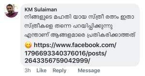 ഒന്നും കൂടി പറയണം…. ഒരാൾ ഞാൻ മകൾക്ക് ‘റോൾ മോഡൽ’ എന്ന് പറഞ്ഞതിന്റെ കാര്യം കൊണ്ട് വന്നു…. അതെ മോനെ….. ഞരന്പ് രോഗമുള്ള ആണുങ്ങളുടെ കയ്യിൽ നിന്നും ബുദ്ധിമുട്ട് അനുഭവിച്ചാൽ അതും പറഞ്ഞ് കരഞ്ഞ് വീട്ടിൽ വരുന്ന പെൺകുട്ടികളല്ല എന്റെ മകൾക്ക് റോൾ മോഡൽ… തക്കതായ മറുപടി കൊടുക്കുകയും നിയമത്തിന് മുൻപിൽ കൊണ്ട് വരുകയും ചെയ്യുന്ന…. പേടിയില്ലാതെ ആ നിശബ്ദമായി കരഞ്ഞ് പോകുന്നവർക്ക് കൂടി ശബ്ദമാവുന്നവരാണ് അവൾക്ക് ഞാൻ റോൾ മോഡലായി പറഞ്ഞ് കൊടുക്കുന്നത്….