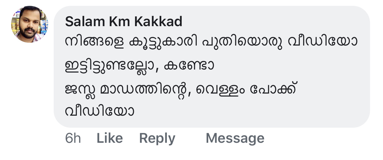 കുറെ എണ്ണത്തിന് കുരു പൊട്ടി എന്റെ മെക്കിട്ട് കയറാൻ വന്നിട്ടുണ്ട്…. ഇവിടെ പോസ്റ്റിന് താഴത്ത് കാണുന്നതൊക്കെ ജസ്ല എന്ന പെൺകുട്ടി ആണുങ്ങളെ അടക്കി പറഞ്ഞ ലേറ്റസ്റ്റ് വീഡിയോ കണ്ടില്ലേ, അതിനെ കുറിച്ച് മിണ്ടുന്നില്ലല്ലോ എന്നും പറഞ്ഞ് എന്റെ എല്ലാ പോസ്റ്റിലും അല്ലെങ്കിൽ ഇൻബോക്സിൽ വന്ന് കരയുന്ന പുരുഷ കേസരികൾക്കുള്ള മറുപടിയാണ്….