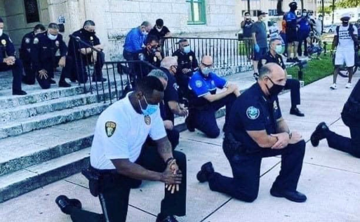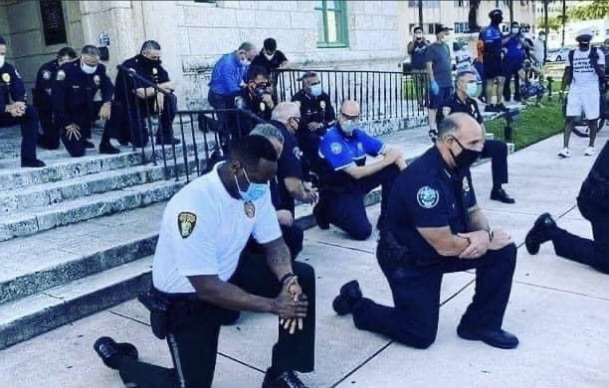 മുട്ടു കുത്തി ഫ്ലോയിഡിനെതിരെ നടന്ന അനീതിക്കെതിരെ പ്രക്ഷോഭകരുടെ കൂടെ ഒരുമിച്ച് നിലനിൽക്കുന്നതിന്റെ പ്രതീകം… ഇതാണ് ശരിയുടെ പക്ഷം…