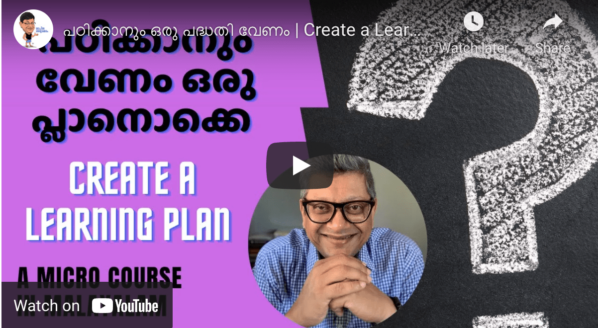 ഒരു മണിക്കൂറിൽ കൂടുതൽ നീണ്ടു നിൽക്കുന്ന ഒരു മൈക്രോ കോഴ്സ്. പ്രായം കുടും തോറും പഠിക്കാനായി പ്ലാനുകൾ ഉണ്ടാക്കണം… അതിനെ കുറിച്ചുള്ള ചില ചിന്തകളാണ് നിങ്ങളുമായി പങ്കു വയ്ക്കുന്നത്.