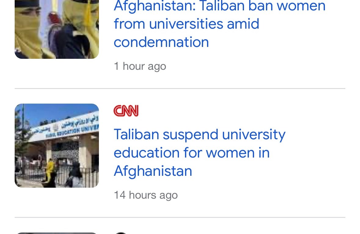 താലിബാനികൾ യൂണിവേഴ്സിറ്റികളിൽ പെൺകുട്ടികൾക്ക് വിലക്ക് ഏർപ്പെടുത്തിയിരിക്കുന്നു.